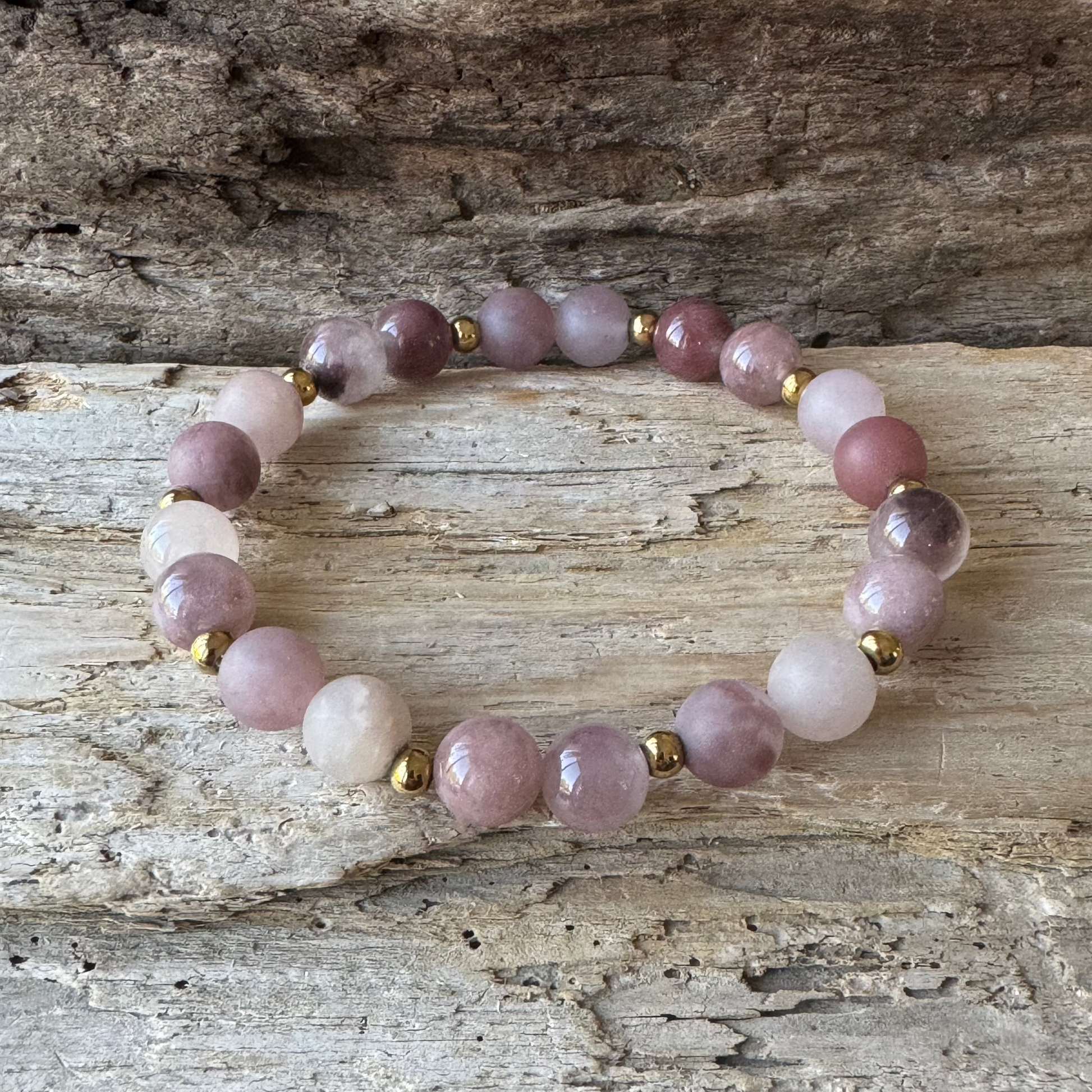 Découvrez l'élégance subtile de notre bracelet en Quartz Berry, alliant des perles mates et lustrées. Les perles mates offrent une sophistication discrète, tandis que les perles lustrées ajoutent une touche d'éclat délicate. Un bijou qui incarne l'harmonie entre la simplicité et la sophistication. Le quartz est une pierre connue pour ses propriétés énergétiques et de guérison.